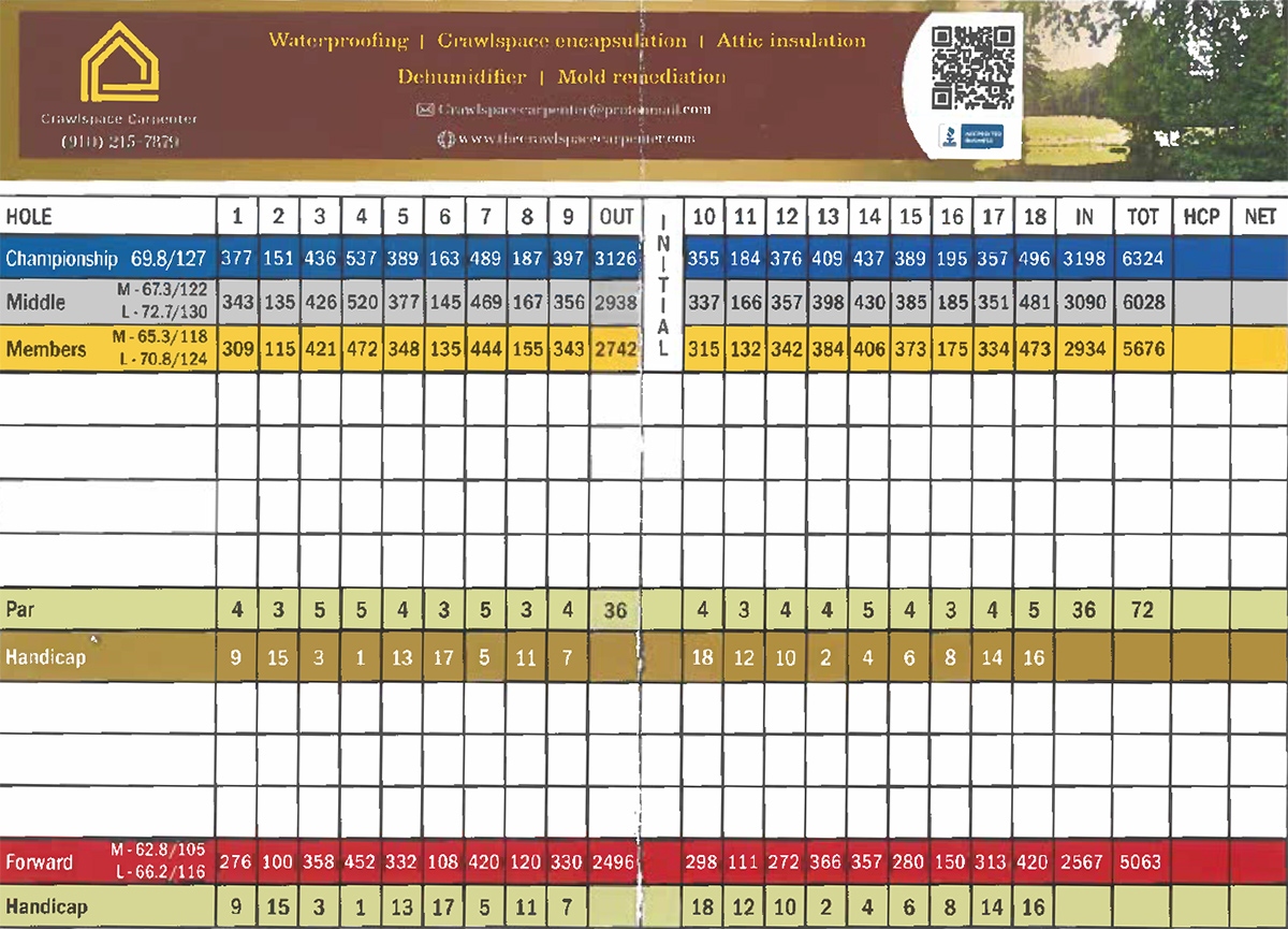 Whispering Woods underwent a major renovation in 2013, with the installation of 18 brand new Champion Bermuda Ultradwarf greens. More than 30 years ago, Ellis Maples — inspired by a picturesque, rolling track of land in the Pinehurst area — carved out another challenge for golfers in the Sandhills. His work, the Whispering Woods Golf Club Course, stands as a credit to him and a pleasure for many. Dan Maples, son of Ellis and a renowned golf course architect in his own right, described “The Woods” this way: “It is a golf course designed with the average player in mind, but good players won’t find a pushover. The well-groomed condition of the course enhances the design and complements the roll of the land. Golfers experience left to right, short shots, long shots, uphill and downhill holes.” Today, the club’s vision is to provide golfers with the best quality product at the most affordable pricing — and exceed their expectations.