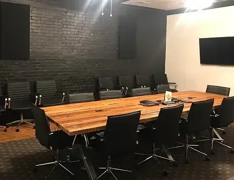 Executive offices and conference room in the heart of Historic Downtown Aberdeen, NC. Our conference room seats up to 18 guests and our user friendly "plug 'n play" equipment is always ready to support your in-person and virtual meeting needs. All guests enjoy access to the kitchenette, lounge and restrooms.