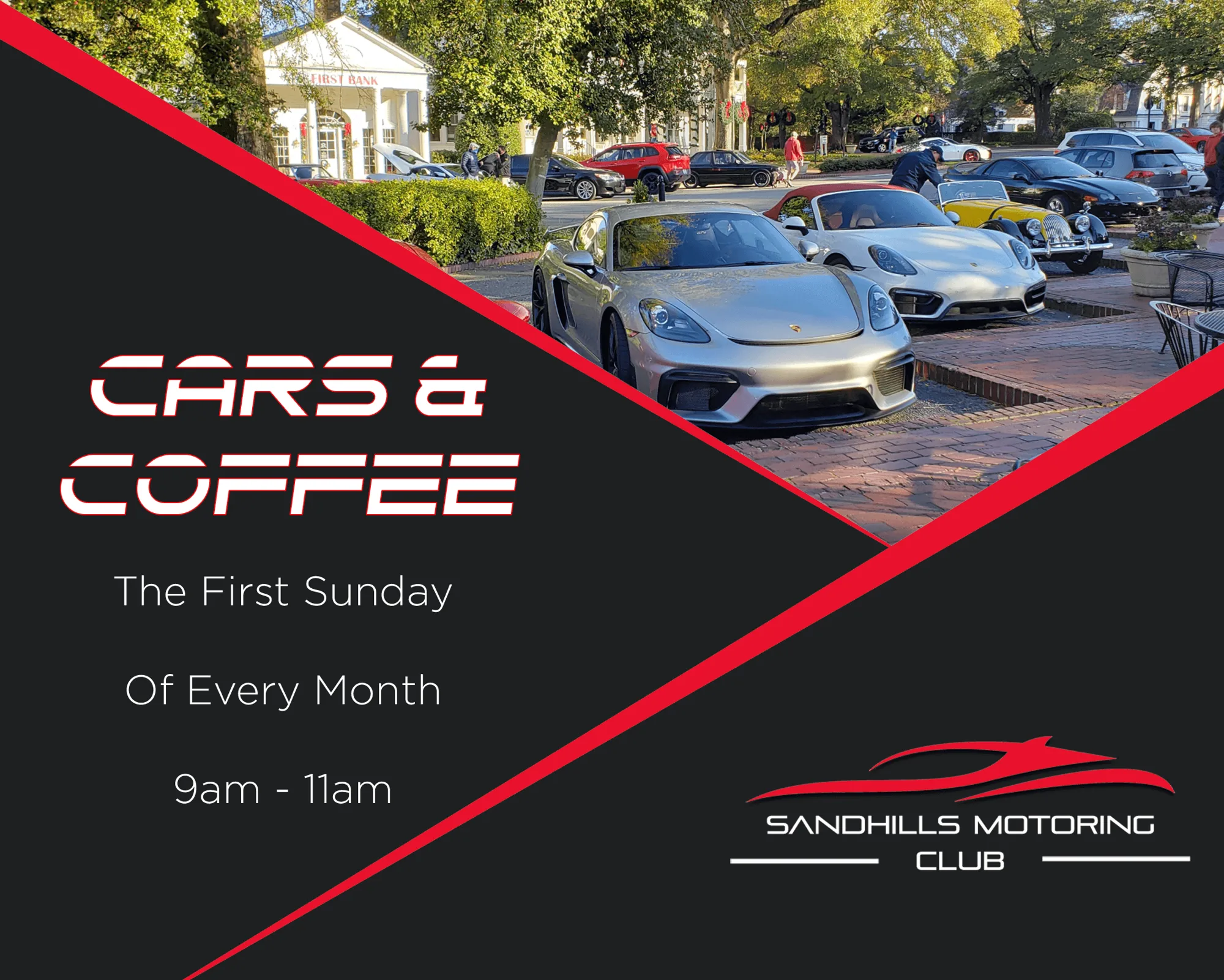 Sandhills Motoring is proud to present Cars & Coffee, the first Sunday of every month from 9am to 11am in the Village of Pinehurst.